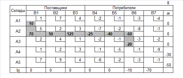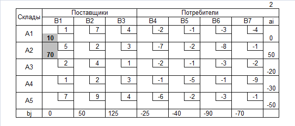 ai – дополнительная потребность (со знаком) i-ого промежуточного пункта (склада);