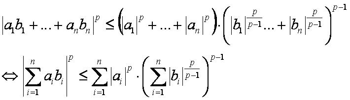Модуль суммы произведений пар из двух наборов чисел не больше произведения 1/p-степени суммы p-степеней модулей первых элементов пар и (p-1)/p-степени суммы p/(1-p)-степеней модулей вторых элементов пар.