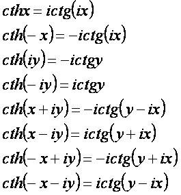 - гиперболические функции комплексной переменной;