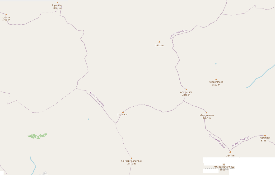 Виралю (3858)(с-з), Чульты (3716)(с-з), Нуссадаг (3741)(с-з) , Кяркяттлаба (3527)(с-в), Курапдаг (3725)(ю-в), Мурсачаква (3767)(ю-в), Амирсундухибаш (3826)(ю-в), Хончарихалилбак (3715)(ю-з), Каталкац (ю-з).