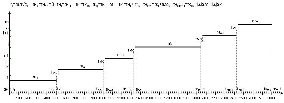 tн i – начало (момент времени) i-ой операции для всех деталей;