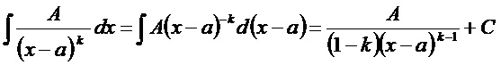 то интеграл от правильной рациональной дроби равен сумме интегралов соответствующих простейших рациональных дробей: