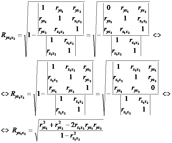 Ryx1x2…xn — коэффициент множественной корреляции.