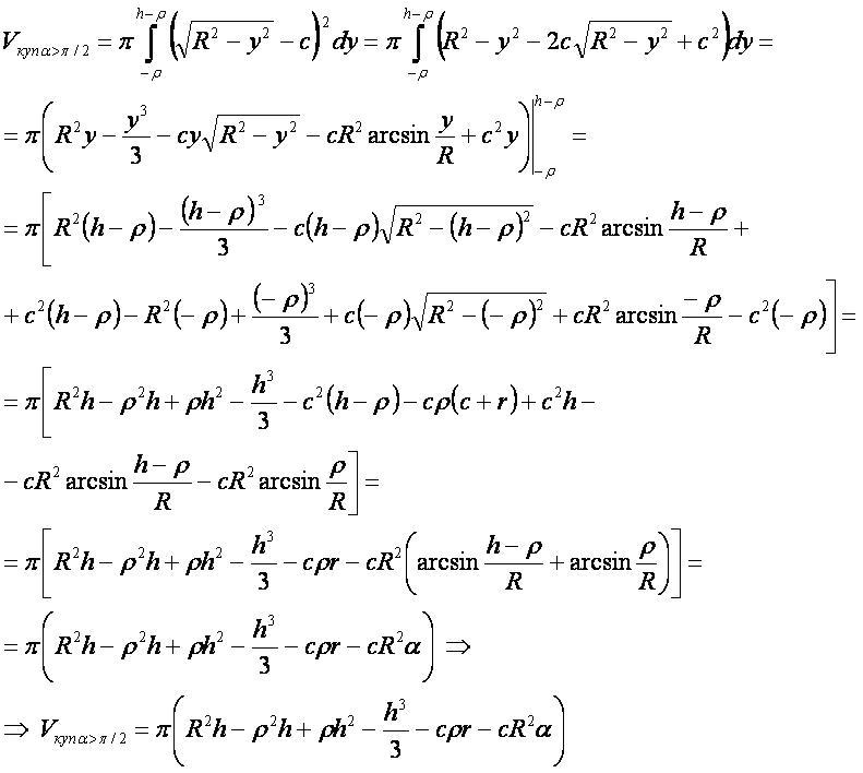 - Для вывода используется формула 2 "объём фигуры вращения".