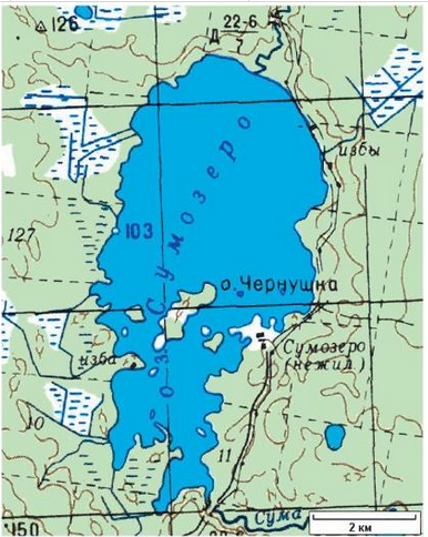 Сумозероозеро в Карелии в России, исток реки Сума.