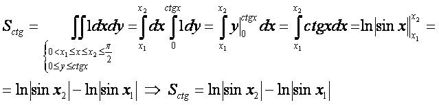 Sctg — площадь, ограниченная котангенсоидой и осью абсцисс при 0<x1≤x2≤π/2.
