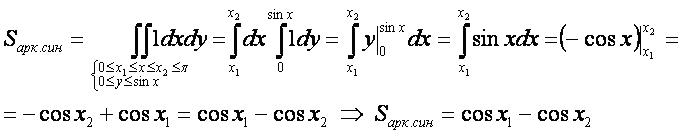 - Площадь полной (от 0 до π) арки синусоиды равна Sарк.sin=2.