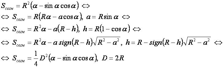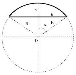 α — угол между осью симметрии сегмента и радиусом в крайней точке сегмента;