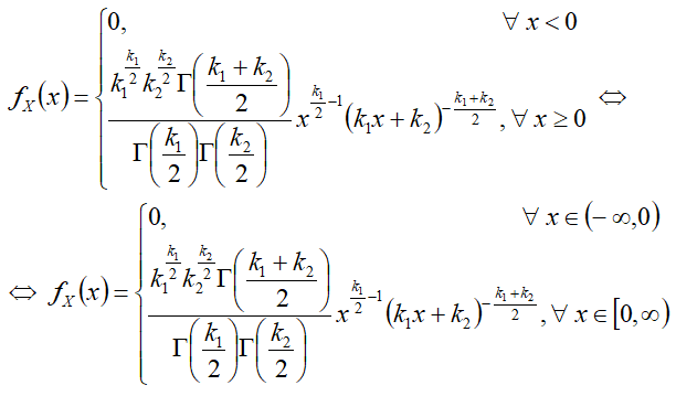 X — случайная величина, равная отношению X1/X2, делённому на отношение k1/k2;