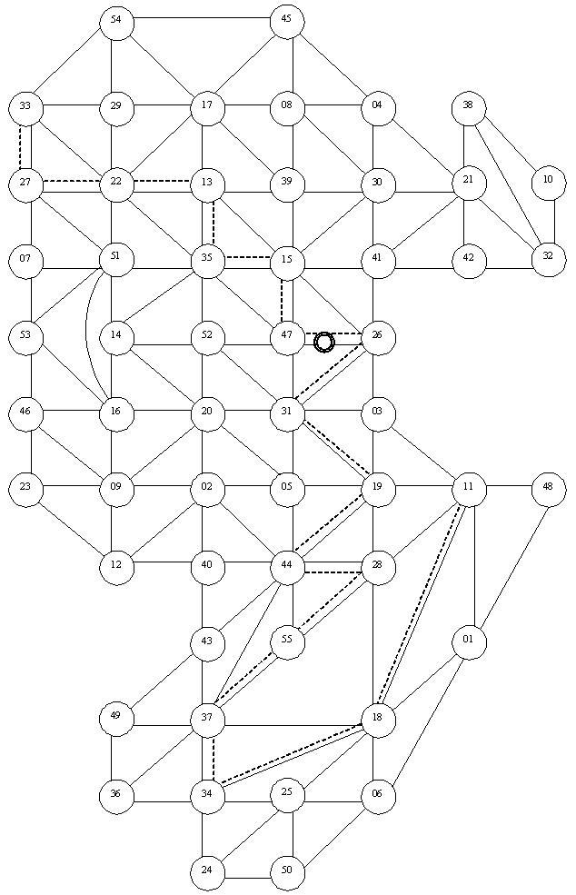 • пунктирная линия означает наличие границ (путей) по рекам, водохранилищам, озёрам или морям.