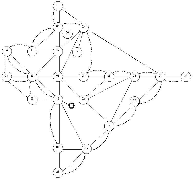 • пунктирная линия означает наличие границ (путей) по рекам, водохранилищам, озёрам или морям.
