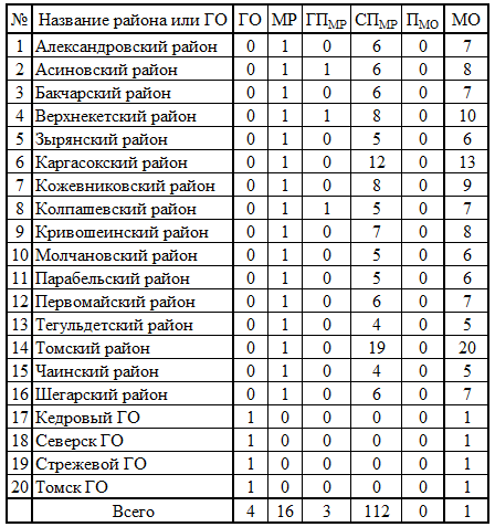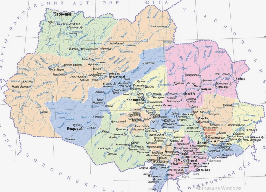 - 6 городов (Томск, Асино, Кедровый, Колпашево, Северск, Стрежевой),