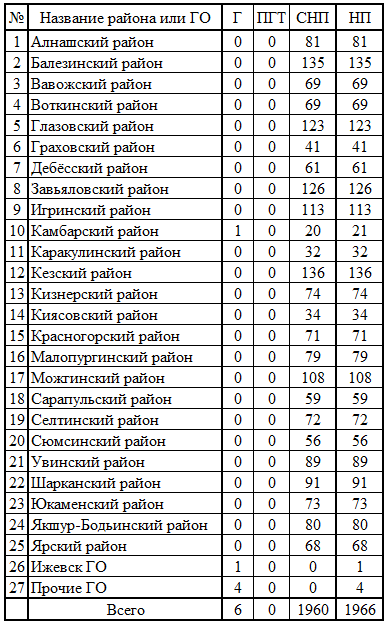 • 6 городов (Ижевск, Воткинск, Глазов, Камбарка, Можга, Сарапул),