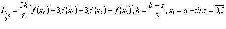 Формула трёх восьмых (формула кубических парабол) - это формула численного интегрирования для вычисления определённых интегралов с заданной точностью.